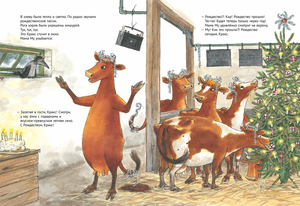 Наступила зима, и приближение Рождества стало чувствоваться повсюду — даже в коровнике у Мамы Му. Ее друг ворона Кракс прилетел в коровник и узнал, что Рождество вот-вот наступит, а он не успел приготовить себе подарок. Но Мама Му придумала для своего друга настоящий рождественский сюрприз: новогоднюю елку, украшенную множеством свечей.